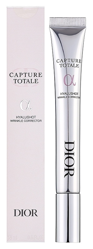 Capture Totale Hyalushot Wrinkle Corrector — це перший засіб для інтенсивного усунення зморшок від Dior, який націлений на кілька областей, щоб впливати як на наявні, так і на ознаки зморшок, що з’являються. Наука Dior показала, що материнські клітини шкіри з віком втрачають свої кріпильні білки, що призводить до втрати гіалуронової кислоти. Зморшки з’являються та закріплюються у 8 основних зонах обличчя. Цей коректор наступного покоління для багатьох зморшок спрямований на ці різні зони.
