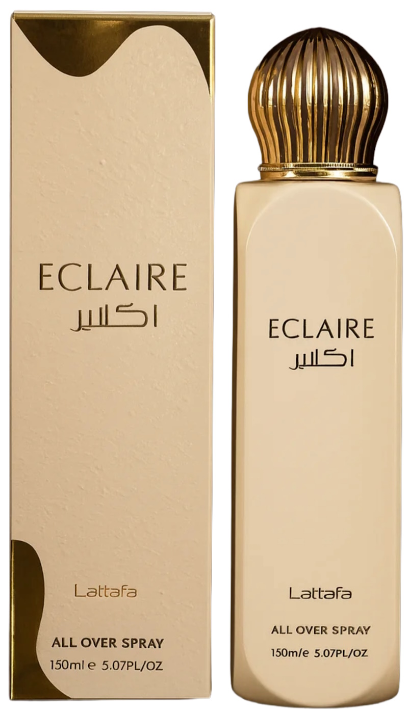 Lattafa Eclaire All Over Spray — ніжний і апетитний аромат у форматі спрею для тіла та волосся, виконаний у солодкому гурманському стилі. Це легка версія парфумів, яка створює відчуття затишку, тепла та «десертного» настрою, ідеально підходить для щоденного використання.