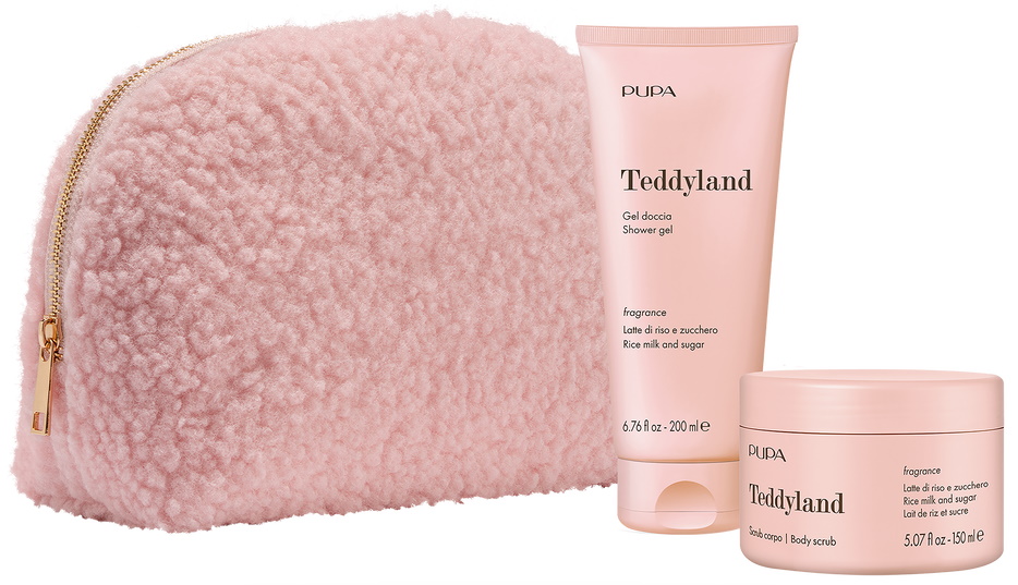 Набір Pupa Milano Teddyland Kit 1 Body Scrub & Shower Gel - це подарунковий комплект, що включає два засоби для догляду за тілом із спокусливими ароматами. Засоби упаковані в м'яку косметичку з плюшевої тканини і забезпечують повноцінний ритуал очищення та відлущування шкіри.